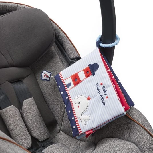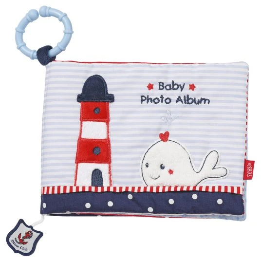 Das Baby-Fotobuch Wal aus der Ocean Club Kollektion von Baby Fehn ist ein niedliches Spielzeug für Babys von Geburt an! Das Fotoalbum mit weichen Seiten lässt sich mit 6 Fotos der tollsten festgehaltenen Momente bestücken, welche sich Babys immer wieder anschauen können. Auf diese Weise können sie entdecken, forschen und fühlen und sich gleichzeitig Gesichter merken und die Namen der Liebsten auf den Fotos lernen. Die Farbvielfalt der kuschelweichen Materialien regt das Sehvermögen an und sorgt für jede Menge Spielspaß. Das spezielle Material der Fotolaschen erschwert dem Baby das Herausnehmen der Fotos – damit kann Baby das Stoff-Bilderbuch immer wieder voller Begeisterung durchblättern!