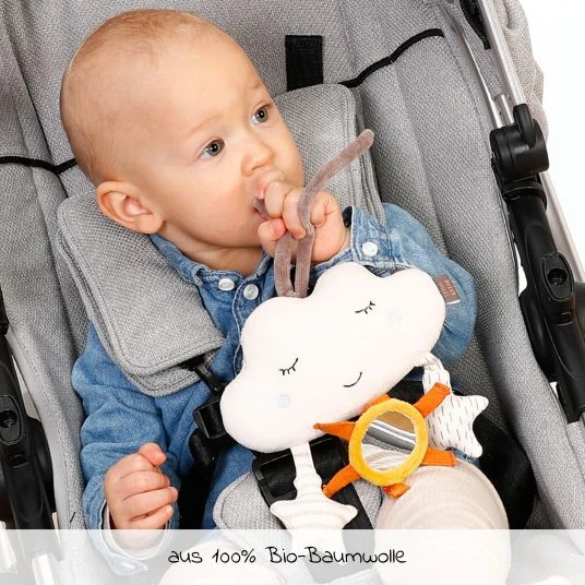Das Mobile lässt sich mit wenigen Handgriffen direkt am Bettchen befestigen oder auch an der Babyschale im Auto. Die kuschelweiche Bio-Baumwollqualität lädt zum Greifen, Fühlen und Schmusen ein und unterstützt die Motorik Deines Schatzes. Möchtest Du die süße Wolke waschen, kannst Du sie einfach per Hand oder schonend mit Handwäsche in der Maschine wieder zum strahlen bringen. In farblich dezentem Design mit liebevollen Details eignet sich das Mobile ideal als Geschenkidee zur Taufe, zur Geburt oder zum Geburtstag.