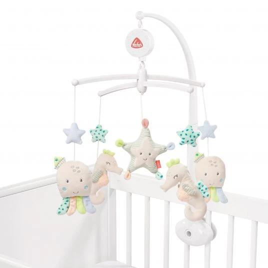 Manchmal fällt es den Kleinsten sehr schwer zu entspannen und in einen ruhigen Schlaf zu finden. Das Fehn Musik-Mobile Meereskinder begleitet Deinen Nachwuchs mit sanften Tönen aus “Schlaf Kindlein Schlaf” in der Schlafenszeit und hilft beim Einschlafen. Die sich im Kreis drehenden, süßen Meeresbewohner sind auch tagsüber eine tolle Beschäftigung, die zum Beobachten einladen und Aufmerksamkeit auf sich ziehen.