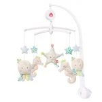 Das lustige Musik-Mobile Sleeping Forest von Baby Fehn führt Dein Baby mit dem Schlaflied Weißt du wie viel Sternlein stehen sanft ins Land der Träume. Die bunten Figuren drehen sich langsam und geben Deinem Kind somit erste optische Reize. Die kleinen Tierchen lassen sich aber auch abnehmen und können zum Kuscheln und Spielen verwendet werden. Das Mobile lässt sich leicht am Babybettchen oder Laufgitter anbringen.