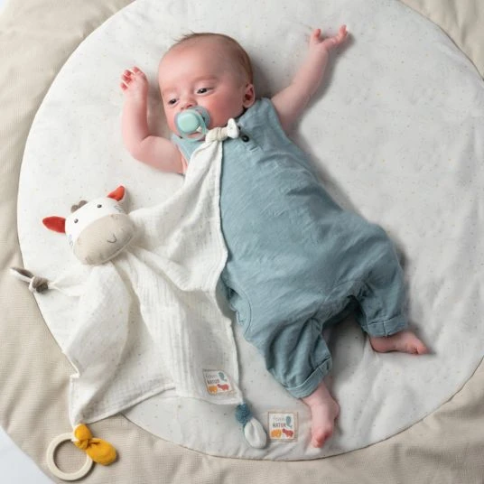Das beliebte Deluxe-Schmusetuch Zebra aus der fehnNATUR® Kollektion ist Tröster, Wärmespender, Einschlafhelfer und Kuschelfreund in einem und dabei Babys treuer Begleiter zuhause und auf Reisen. Beim Einschlafen spendet das natürliche Kuschel-Zebra Geborgenheit. Tagsüber laden der Holzring und die nachhaltigen Materialien aus 100% Bio-Baumwolle aus kontrolliertem und zertifiziertem Anbau sowie die Füllung aus 100% bio-basierten PLA-Fasern aus nachwachsenden Rohstoffen zum Greifen, Fühlen und Knuddeln ein, sodass das niedliche Zebra bald nicht mehr aus der Hand gegeben wird. Der praktische Befestigungsring am Stoff-Zebra sorgt dafür, dass Babys Schnuller auf großen Abenteuern nicht verloren geht.