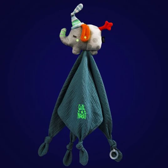 Sobald die kleinen Babyhändchen dazu in der Lage sind, greifen sie gerne nach einem Tuch zum Kuscheln. Besonders in stressigen Situationen gibt ihnen ein Schnuffeltuch mehr Sicherheit. Das Fehn Schmusetuch Elefant ist ein flauschiger, treuer Begleiter für jede Alltagssituation, den Dein Nachwuchs immer bei sich haben kann. Der Elefant ist mit Elementen ausgestattet, die im Dunkeln leuchten. So fühlt sich Dein kleiner Engel beim Einschlafen noch geborgener.