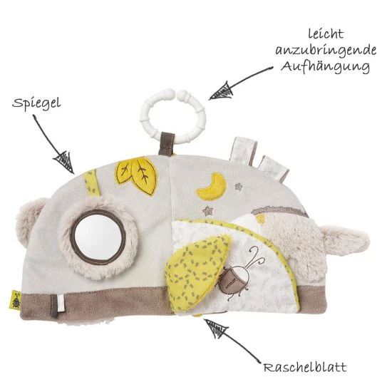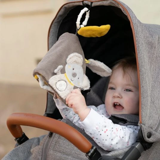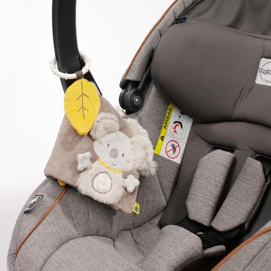 Eine Entdeckungsreise für alle Sinne bietet das Soft-Bilderbuch Koala & Freunde aus der Australia Kollektion von Baby Fehn Deinem kleinen Schatz. Bunte Farben und abwechslungsreiche Materialien machen das Soft-Bilderbuch zu einem echten Lieblingsspielzeug. Auf 8 Seiten wird der Kontinent mit seinen Bewohnern lebendig und begreifbar. Der kuschelige Koala auf der Titelseite lädt zum Entdecken, Forschen und Fühlen ein. Auf der ersten Seite gibt es zunächst einen kleinen Spiegelanhänger, in dem Dein Baby spielerisch sich selbst entdecken kann. Dahinter verbirgt sich ein applizierter Schmetterling zum Fühlen. Hinter dem Raschelblatt mit vielen kleinen Ameisen versteckt sich ein Käfer, der erfühlt und ertastet werden will. Über Stock und Stein begegnet Deinem Baby als nächstes die Ameise. Doch was war das? Beim Umblättern ertönt ein lustiges Rasselgeräusch. Zu guter Letzt macht Dein Kleines Bekanntschaft mit dem Ameisenbären. Er liegt hinter dem kleinen Busch auf der Lauer. Wenn er gedrückt wird quietscht der Ameisenbär fröhlich. So hält das Soft-Bilderbuch Koala einige Abenteuer bereit. Dank des flexiblen C-Rings lässt sich das Soft-Bilderbuch einfach und sicher an Babyschale, Kinderwagen und Bettchen befestigen. So kann Dein Kleines unterwegs und auch zuhause spielerisch die Welt begreifen.