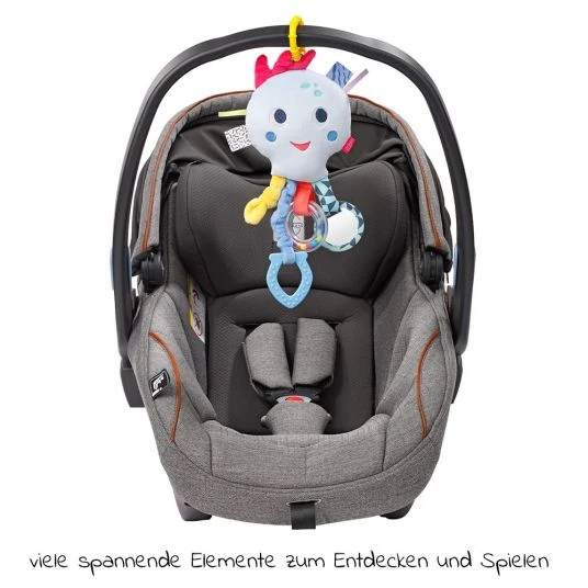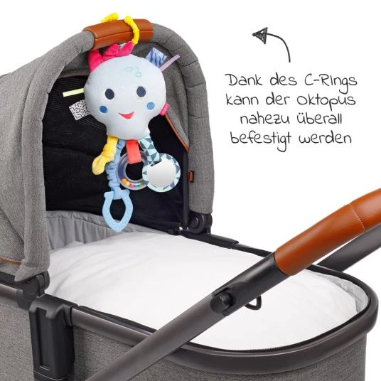 Dank dem praktischen Universal-Ring kann der kunterbunte Oktopus überall dort befestigt werden, wo er gerade benötigt wird. So kann Dein Baby seinen Spielgefährten auch unterwegs mit dabei haben. Die fröhliche Gestaltung macht das Spielzeug zu einer tollen Geschenkidee.