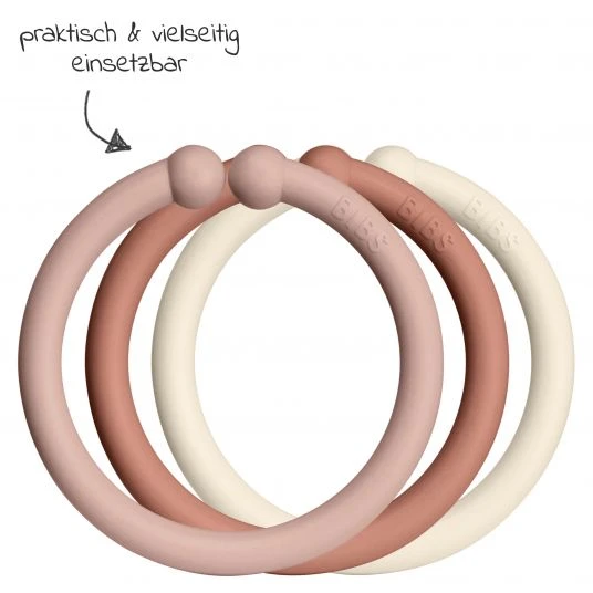 - vielseitig einsetzbare Ringe: nicht nur als Kinderwagenkette sondern auch als Beißring, Spielzeug uvm.