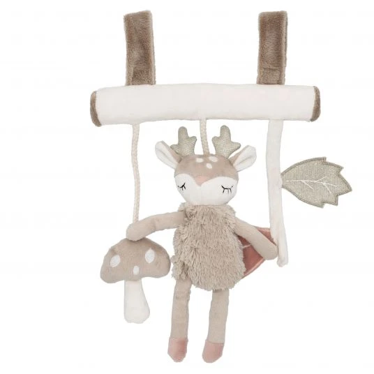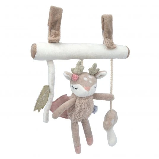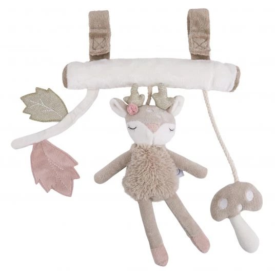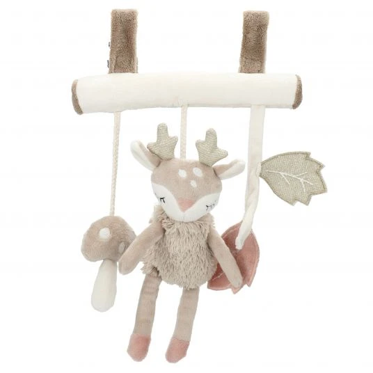 Kuschelig weiche Stoffe liegen dabei sehr angenehm in der Hand und sind sanft zur zarten Babyhaut. Das Trapez kann Dein Baby überall hin begleiten: Ob am Kinderwagen, am Tragegriff der Babyschale, im Laufgitter oder am Bettchen, die niedliche Ella macht überall Freude. Dank der beiden Klettverschlüsse lässt sich das Spielzeug flexibel anbringen und auch wieder abnehmen. Das schöne Wald-Design mit bezauberndem Reh macht das Trapez zu einer tollen Geschenkidee zur Geburt.