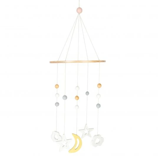 Ob als Einschlaf- oder Beruhigungshilfe, das Bieco Mobile Sternenhimmel ist ein zauberhafter Blickfang im Babyzimmer. Die schönen Holzelemente mit Mond, Sternen und Wolken in zarten Farbtönen laden zum Beobachten und Entspannen ein. Über der Wickelkommode angebracht, ist das Mobile eine schöne Ablenkung. Über dem Kinderbettchen dient es als Einschlafhilfe und begleitet Dein Kleines sanft in das Land der Träume.