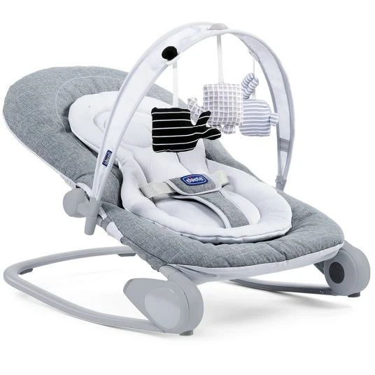 Ob Schlafen, Spielen oder Füttern – die Babywippe Hoopla – Titaniumvon Chicco verwandelt sich ganz nach den Bedürfnissen Deines Babys und wird zu einem gemütlichen Aufenthaltsort ab dem ersten Lebenstag. In der Wippe kann Dein Kleines auch komfortabel ein kurzes Nickerchen halten. Über die 4-fach verstellbare Rückenlehne neigst Du die Liegefläche in eine komfortable Ruheposition. Dabei schaukelt Hoopla sanft hin und her und wiegt Dein Baby ruhig in den Schlaf.