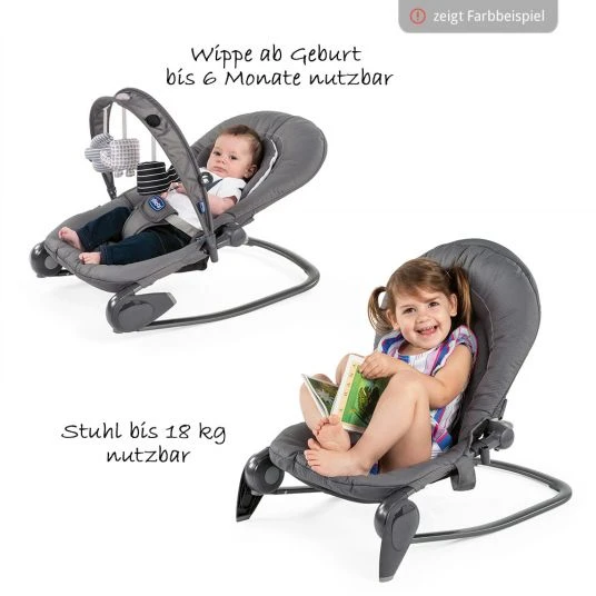 - Altersempfehlung: ab der Geburt bis max. 9 kg als Wippe, ab 12 Monate bis max. 18 kg als Stuhl