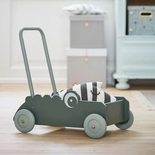Für Deinen kleinen Engel sind die ersten Schritte und Gehversuche sehr herausfordernd. Um ihn zu unterstützen, bietet der Done by Deer Lauflernwagen im süßen Krokodil-Design in grüner Farbe zuverlässigen Halt. Ausgestattet mit einer Haltestange und einer rutschhemmenden Gummi-Bereifung ist der kleine Entdecker ab dem 9. Monat sicher unterwegs. Bremsen an den Hinterrädern bieten zusätzliche Sicherheit. Vorne bietet der Wagen jede Menge Platz, so dass sogar das Lieblingskuscheltier mitfahren darf.