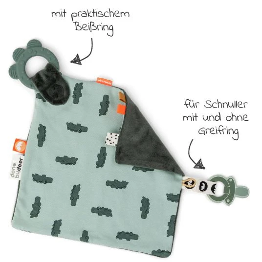Done by Deer Schmusetuch mit Beißring & Schnullerhalter – Croco in Grün