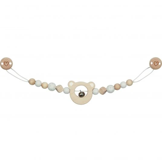 Sie ist nicht nur ein zauberhaftes Accessoire am Kinderwagen, sondern auch eine schöne Unterhaltung für Dein Kleines: die Goki Kinderwagenkette – Bärenkopf, Made in Germany. Ausgestattet mit Perlen, Ring und Holz-Bärenkopf gibt es für Deinen Nachwuchs viel zu entdecken. Die unterschiedliche Formen an der Kette laden zum Beißen und Fühlen ein.