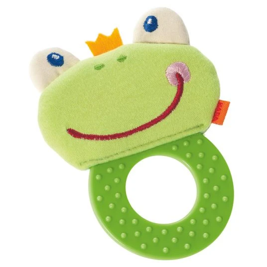 Der grüne Greifling Beißkerl Frosch von Haba wird ein treuer Begleiter Deines Babys. Sein weicher Kopf schmiegt sich sanft an Babys haut, während die Knisterfunktion kleine Entdecker neugierig macht. Auf dem genoppten Ring kann dein Schatz nach Herzenslust Rumkauen und so das gereizte Zahnfleisch angenehm massieren.