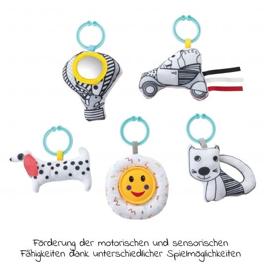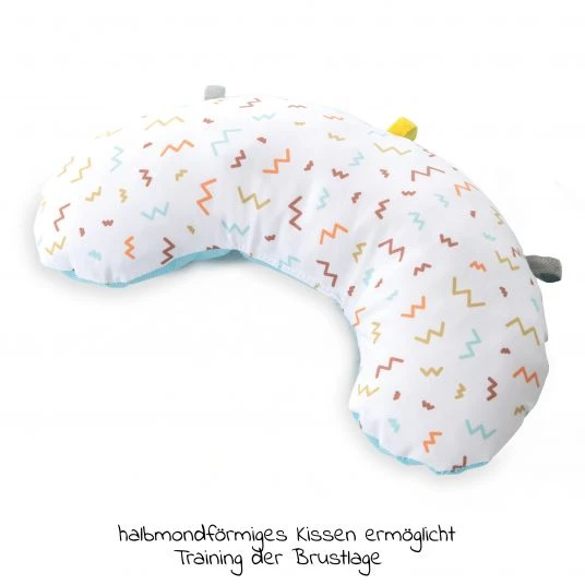 Die Elemente ermöglichen es Deinem Baby, Geräusche zu erzeugen, sich im Spiegel selbst zu entdecken, Musik zu hören uvm. Auf diese Weise ist Deinem Baby nicht nur jede Menge Spielspaß geboten, auch die Sinne und die Motorik werden dabei gefördert. Möchte der kleine Entdecker auf dem Bauch spielen, unterstützt ihn das halbmondförmige Kissen um die Bauchlage zu üben.