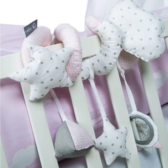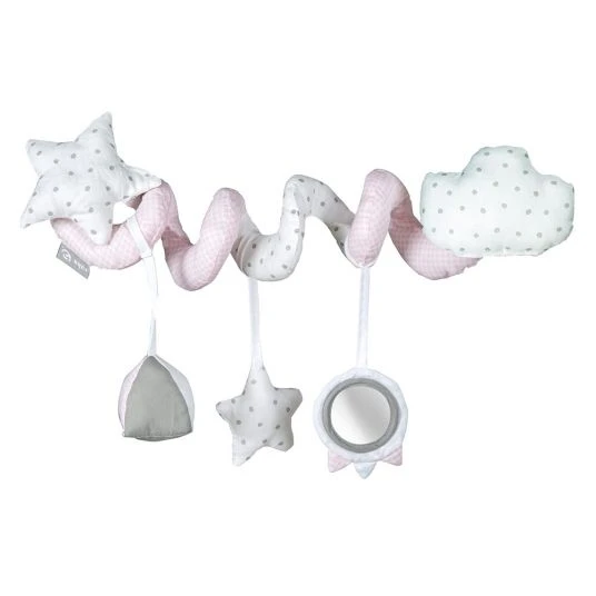 Die Activity-Spirale Kleine Wolke – Rosa sorgt im Bettchen oder im Laufstall für Spielspaß, Die Spirale lässt sich ganz einfach befestigen. Die drei lustigen Spielelemente regen zum Greifen, Spielen und Entdecken an. Da gibt es nämlich eine kleine Rassel, einen Spiegel und einen Quietscher zu entdecken.