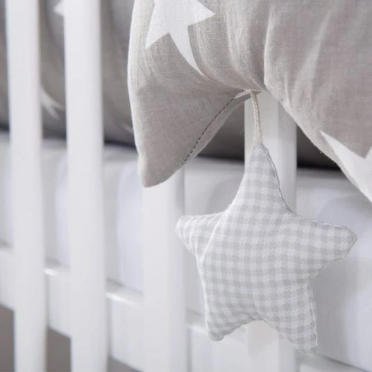 Die Spieluhr Little Stars von Roba beruhigt Ihr Baby und sorgt für eine entspannte Atmosphäre. Der weiche Stern besteht aus einem weichen Polyester-Baumwoll-Gemisch und ist mit kleinen Sternchen verziert. Die weiche Füllung aus Polyester-Vlies macht ihn auch zum Kuschelgefährten. Die Spieluhr spielt die Melodie La-Le-Lu und lässt sich einfach herausnehmen, so können Sie den Bezug einfach reinigen.