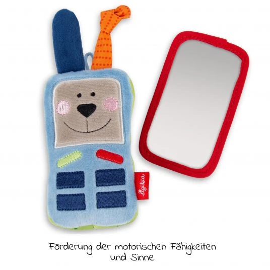 Ab ca. 3 Monaten können Babys schon gezielt nach Dingen greifen. Um Deinen kleinen Spatz dabei zu unterstützen, eignet sich der Sigikid Greifling Handy wunderbar. Das knuffige Mobiltelefon begeistert mit kräftigen Farbtönen und niedlichen Details wie einem freundlichen Gesicht auf dem Display, Knopf-Applikationen, Etiketten oder einem Klett-Spiegel. Sie motivieren schnell zum Greifen und Erforschen, so dass Dein Nachwuchs seine Sinne und die Motorik spielerisch fördern kann.