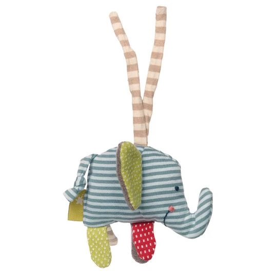 Das niedliche Spieltier zum Aufhängen – Elefant von Sigikid bietet alles, was ein erstes Spielzeug für Dein Baby haben sollte: er ist einfach zu greifen, mit vielen Zipfelchen zum Ertasten und Nuckeln, sowie mit akkustischem Reiz – denn der kleine Elefant rasselt für sein Leben gern. Dank der langen Schlaufen kannst du das Tierchen nahezu an allem befestigen, sodass es Deinen Liebling überall hin begleiten kann. Der Elefant ist aus reinen Naturmaterialien gefertigt – sein Bezug besteht aus kontrolliert biologisch angebauter Baumwolle und befüllt wurde er mit reiner Schafswolle.