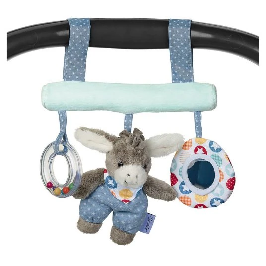Das Activity-Trapez Emmi von Sterntaler kann mithilfe von Klettverschlüssen mühelos an der Babyschale, am Kinderwagen oder am Kinderbettchen befestigt werden. So hat Dein Baby sein Spielzeug zu Hause und unterwegs immer in seiner Nähe und es geht nicht verloren. Die weiche Plüschfigur kann so nach Herzenslust ertastet und beobachtet werden. Die niedlichen Figuren wird Dein Kind schnell in sein Herz schließen. Eine integrierte Rassel und der Spiegel sorgen für zusätzlichen Spielspaß und Spannung. Zur Reinigung kannst Du das Spielzeug bequem in die Waschmaschine geben.