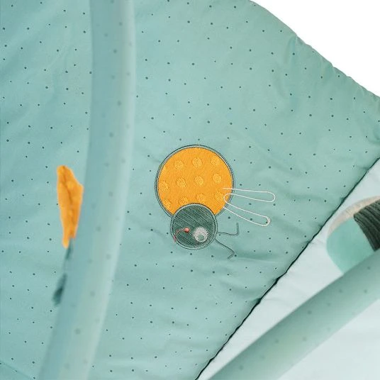 Die Spieldecke mit Spielbogen Bär Ben 100 x 80 cm von Sterntaler ist ein wahres Multitalent. Dein Baby findet hier einen Platz zum Spielen, Krabbeln, Entdecken und Ausruhen. Die wattierte und weiche Plüschdecke polstert den Boden und hält Kälte ab. Darüber befindet sich der Spielbogen mit Rassel, Spiegel, und niedlichen Stofffiguren. Diese kannst Du einzeln abnehmen, wenn Dein Kind damit spielen und kuscheln möchte. Zusätzlich integriertes Knisterpapier, Quietsche und Soundmodul sorgen für spannenden Spielspaß. Dein Kind kann hier viel entdecken und seine Sinne werden auf spielerische Weise geschult. Der Spielbogen lässt sich auch abnehmen und die Unterlage als Krabbeldecke verwenden. Bei Verschmutzungen kannst Du die Activity-Decke ganz bequem in der Waschmaschine reinigen.