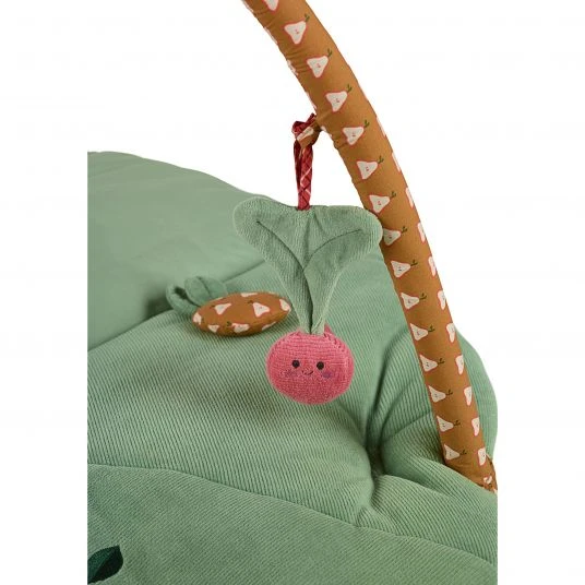 Die Spieldecke mit Spielbogen Emmilius 100 x 80 cm von Sterntaler ist ein wahres Multitalent. Dein Baby findet hier einen Platz zum Spielen, Krabbeln, Entdecken und Ausruhen. Die wattierte und weiche Plüschdecke polstert den Boden und hält Kälte ab. Darüber befindet sich der Spielbogen mit den niedlichen Stofffiguren Esel Emmilius, Radieschen, Aubergine, Kiwi und Möhre, die tolle Überraschungen wie eine Rassel oder Spiegelfolie bereithalten. Die Figuren kannst Du einzeln abnehmen, wenn Dein Kind damit spielen und kuscheln möchte.