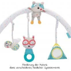 Dein Schatz kann sich im Spiegelelement selbst betrachten, oder die kleinen Applikationen und verschiedenen Texturen auf der Decke erkunden. Der Spielbogen lässt sich dank praktischem Klick-Verschluss in Sekundenschnelle abnehmen. Somit kann die Decke auch nur als einfache Krabbeldecke oder flauschige Wohlfühloase zum Ausruhen verwendet werden. Bei Verschmutzungen kannst Du das kuschelige Spielparadies ganz bequem in der Waschmaschine bei 40°C reinigen.