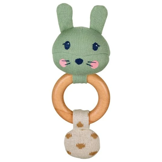 Der süße Hasenkopf Kinni lädt zum Tasten, Fühlen und Betrachten ein, während der stabile Beißring aus Buchenholz gerne mit dem Mund erkundet wird. Er lässt sich von kleinen Kinderhänden sehr gut halten und ist mit seiner praktischen Größe von 18 cm auch unterwegs eine tolle Beschäftigung für Dein Baby. Der weiche Baumwollstoff und das glatte Holz liegen zudem sehr angenehm in der Hand. Die niedliche Gestaltung macht das Spielzeug zu einer tollen Geschenkidee.
