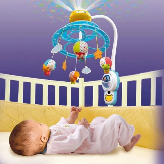 Mit dem Schlaf gut Musik-Mobile von Vtech kann Dein kleiner Schatz leicht ins Land der Träume gelangen. Das Mobile hat vier bunte, bewegliche Tiere und spielt Musik.
